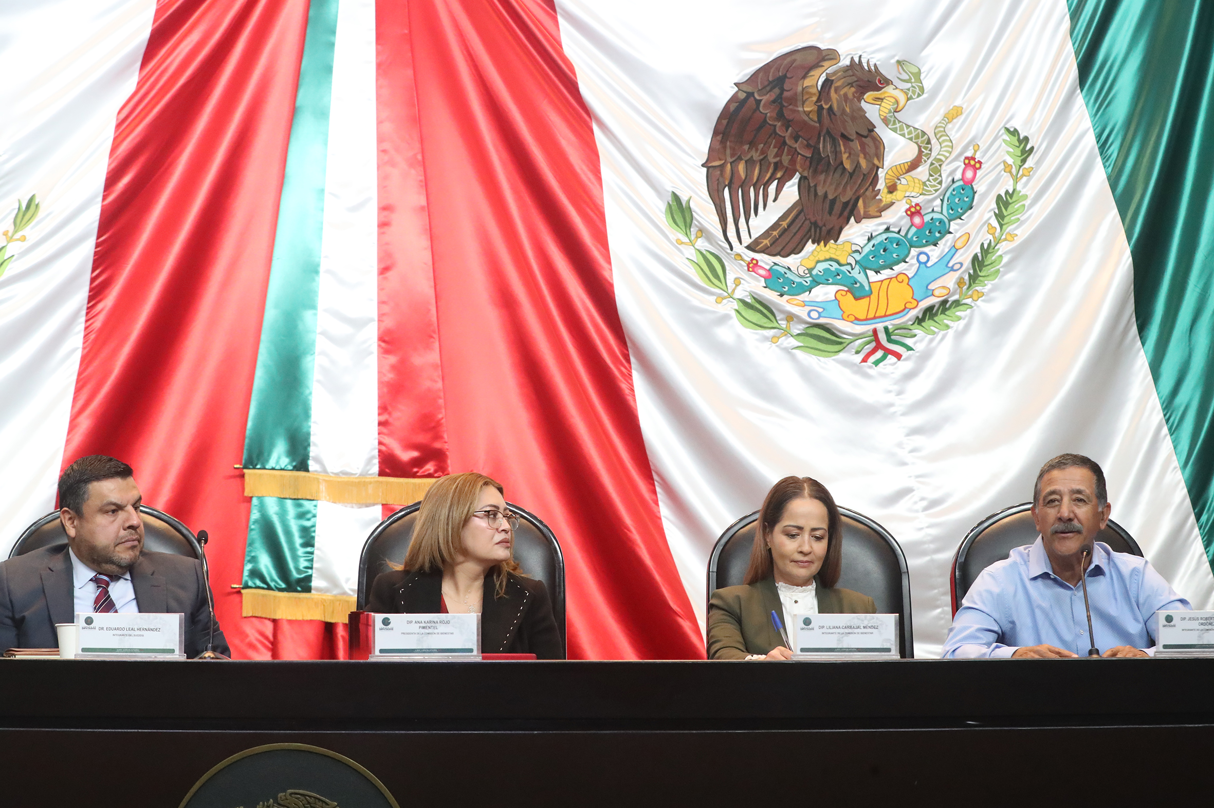 Dr. Eduardo Leal, Dip. Ana Karina Rojo, Dip. Liliana Carbajal y Dip. Jesús Roberto Corral