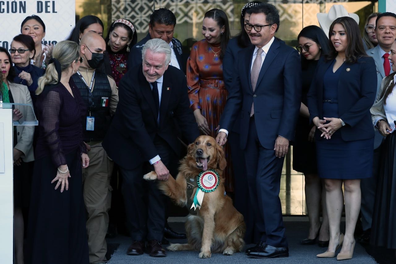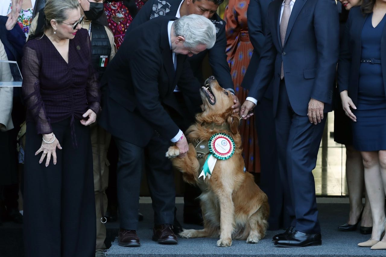 El presidente de la Mesa Directiva, Santiago Creel Miranda, encabezó la ceremonia de jubilación del elemento canino “Lucas”, un perro de raza Golden Retriever, integrante del Grupo Especial de Neutralización de Riesgos de la Cámara de Diputados.