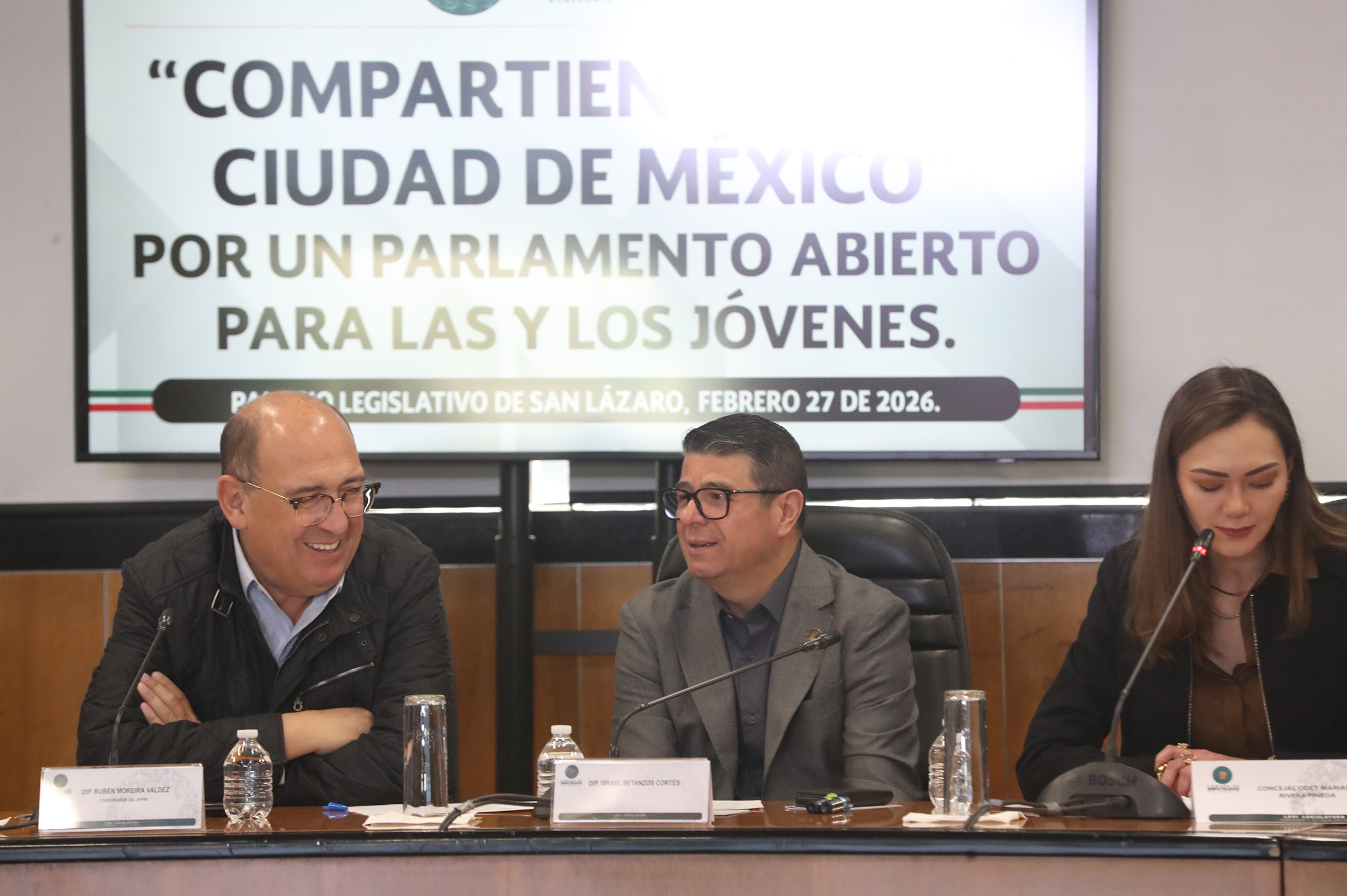 Dip. Israel Betanzos, Dip. Rubén Moreira y Mariana Rivera