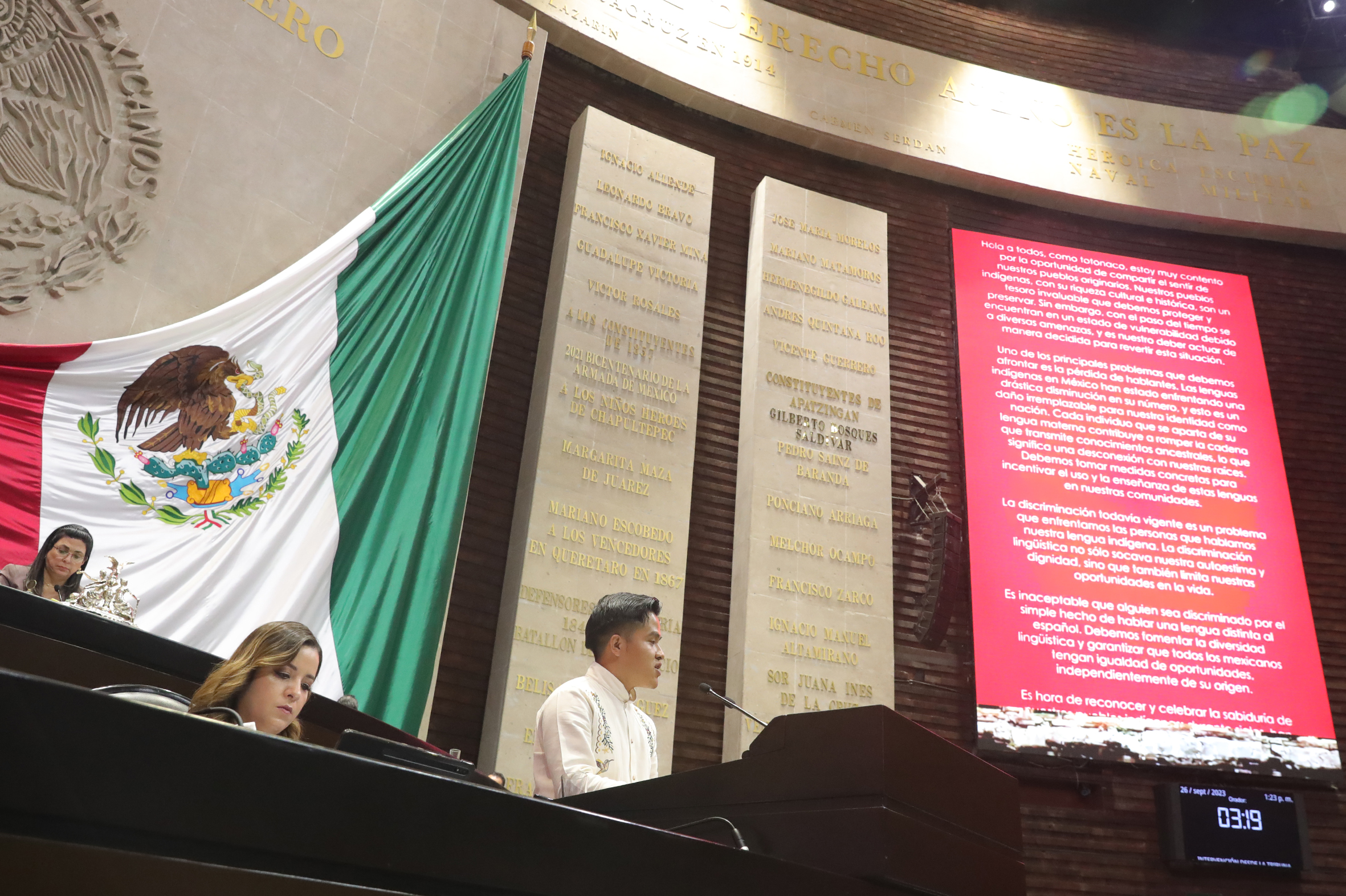 Intervención del C. Román de Jesús Cortés Vázquez, hablante de lengua Totonaca