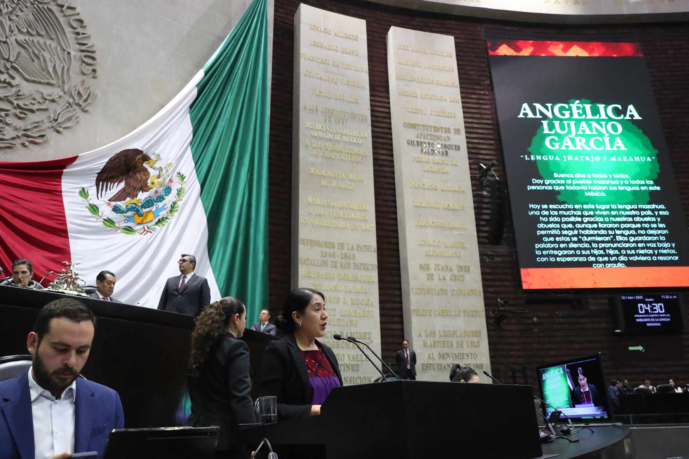 Intervención desde la tribuna de la C. Angélica Lujano García, hablante de lengua Mazahua