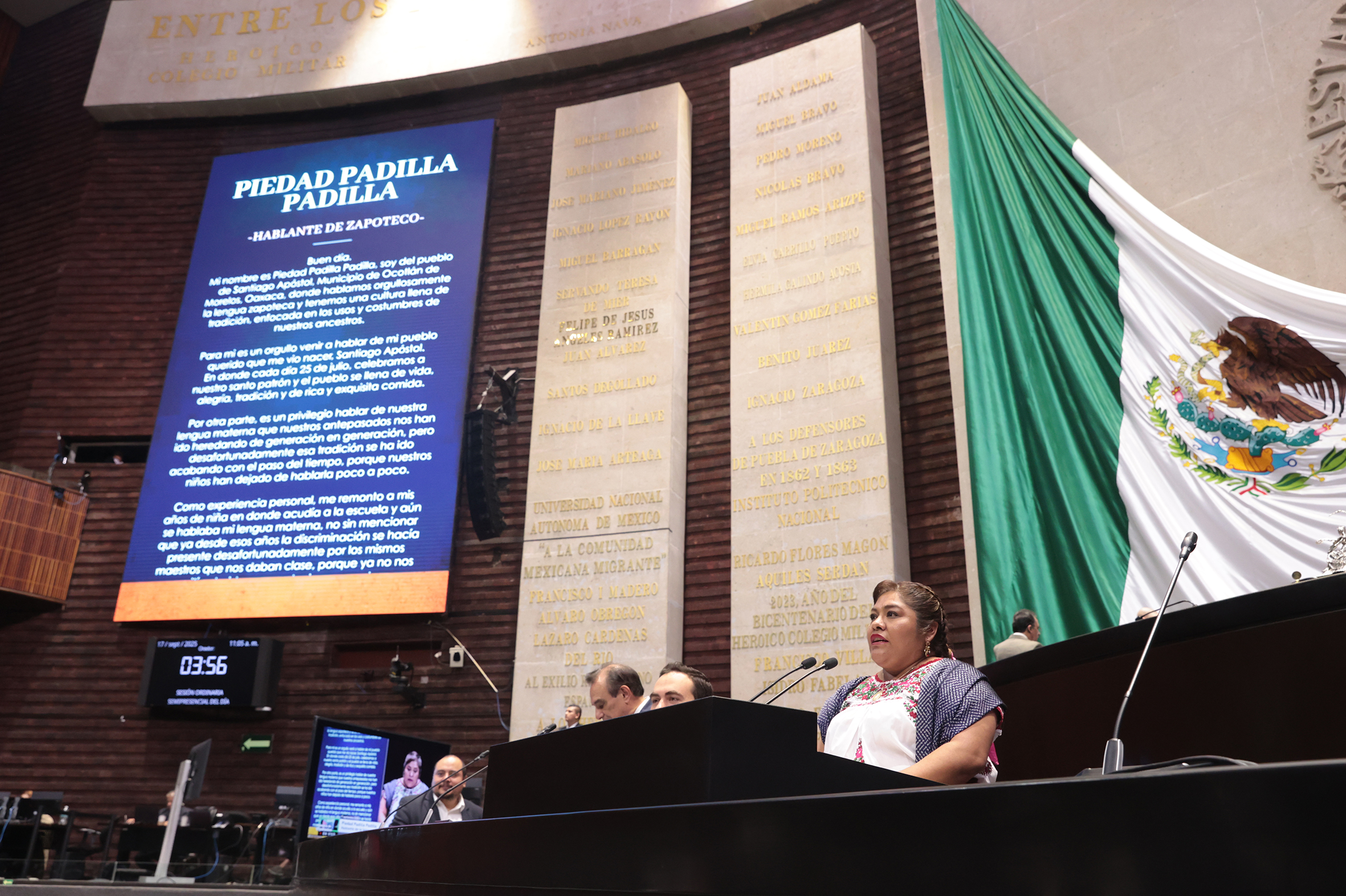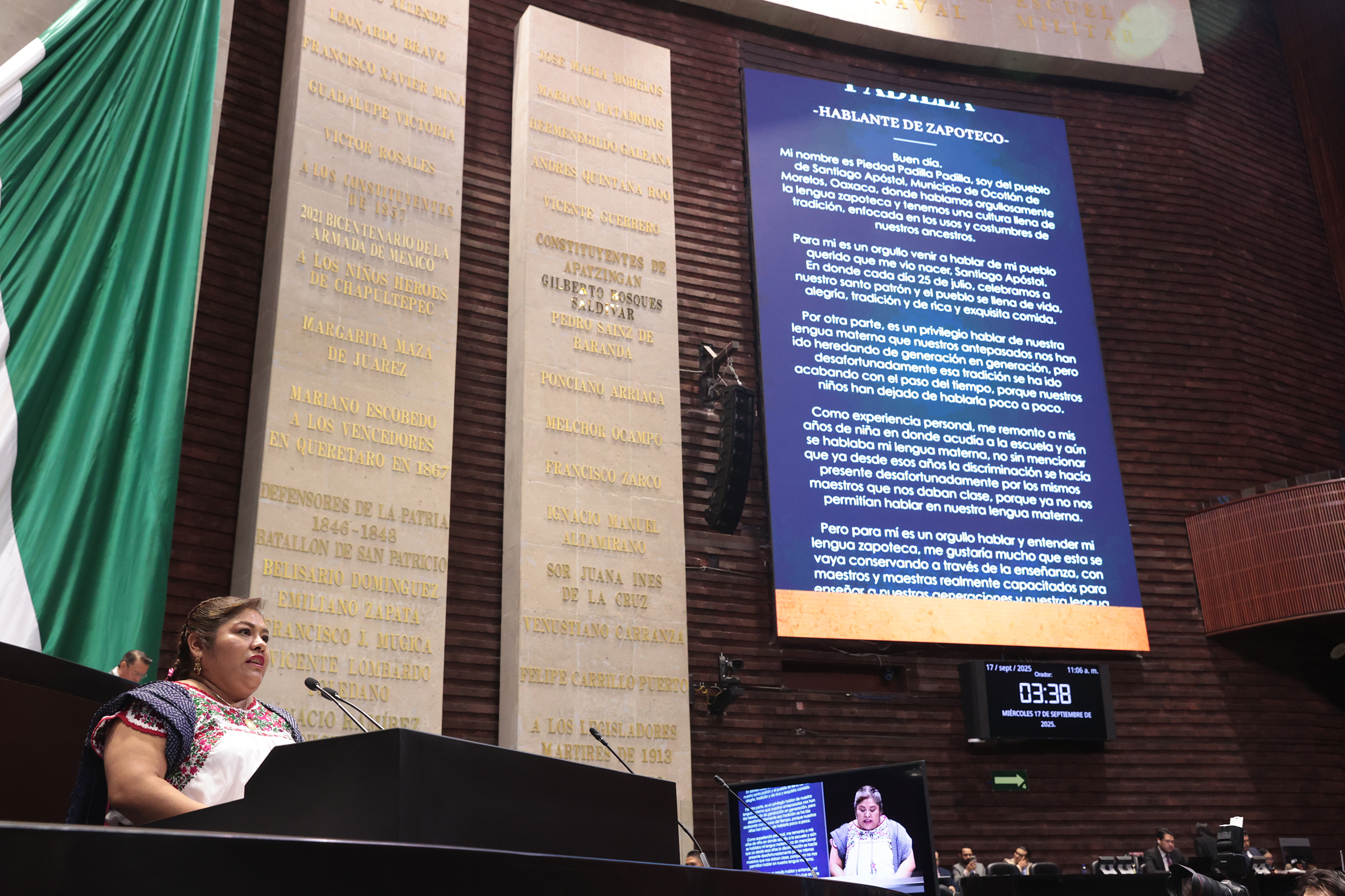 Intervención desde la tribuna de la C. Piedad Padilla Padilla, hablante de lengua Zapoteca