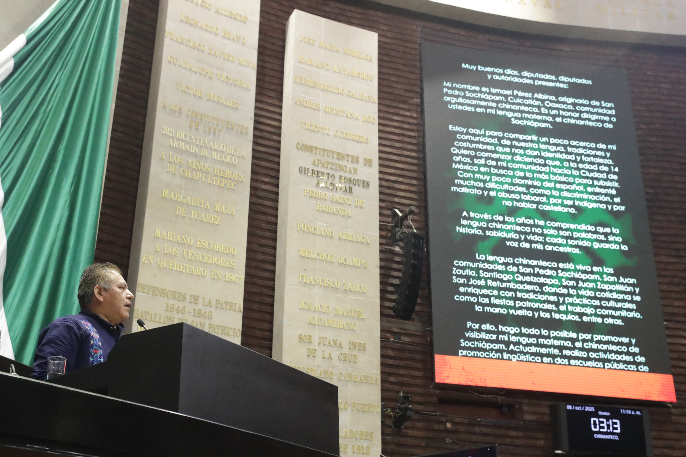 Intervención desde la tribuna del C. Ismael Pérez Albina, hablante de lengua Chinanteco