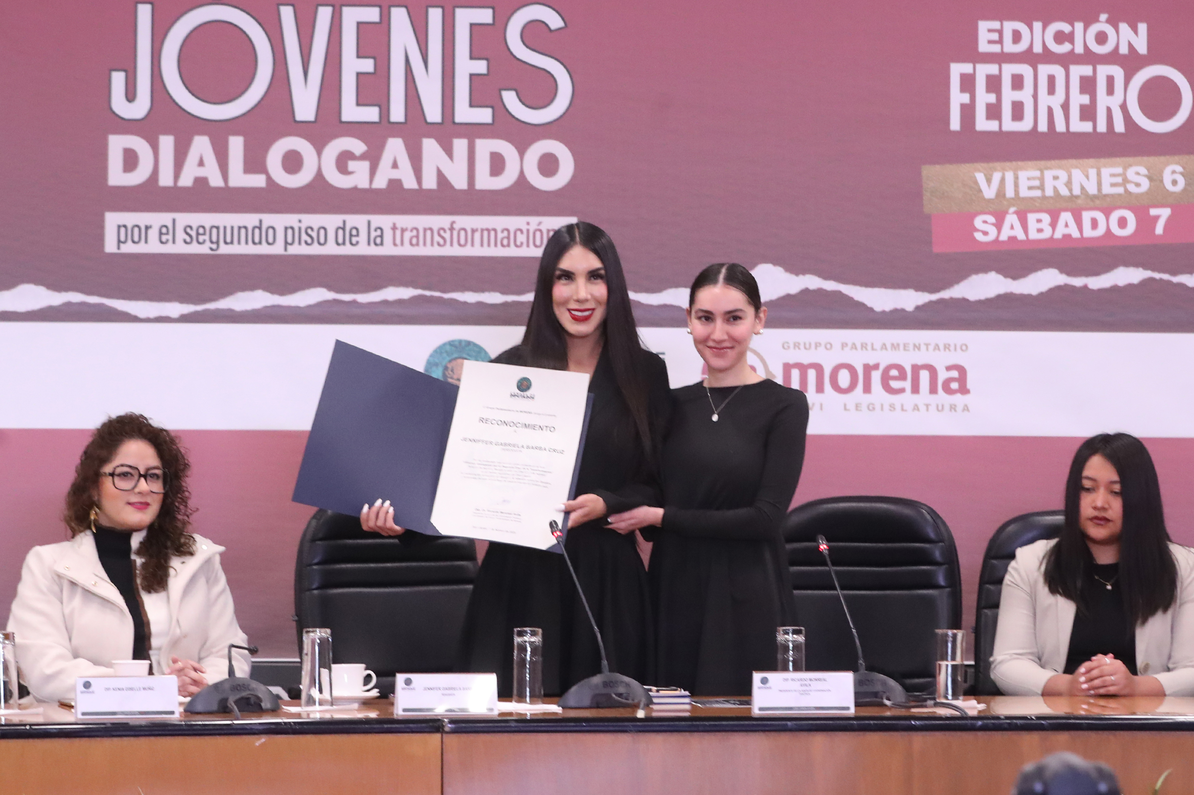 Jennifer Gabriela Barba, Mtro. Rodolfo González, Sen. Cynthia López y Lic. Emiliano Rojas