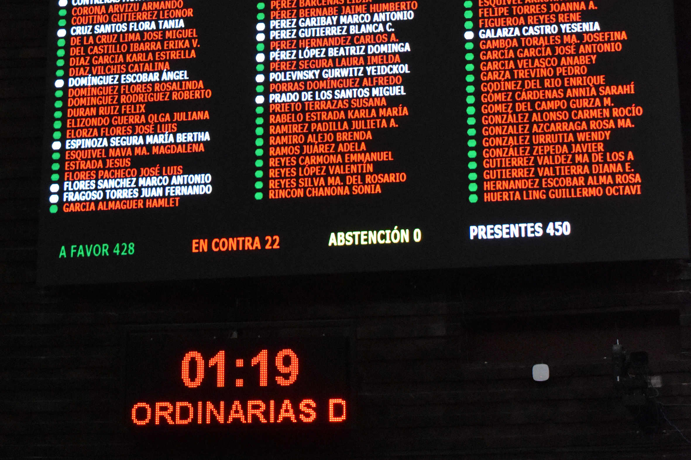 Votación económica que aprueba el acuerdo parlamentario de JUCOPO
