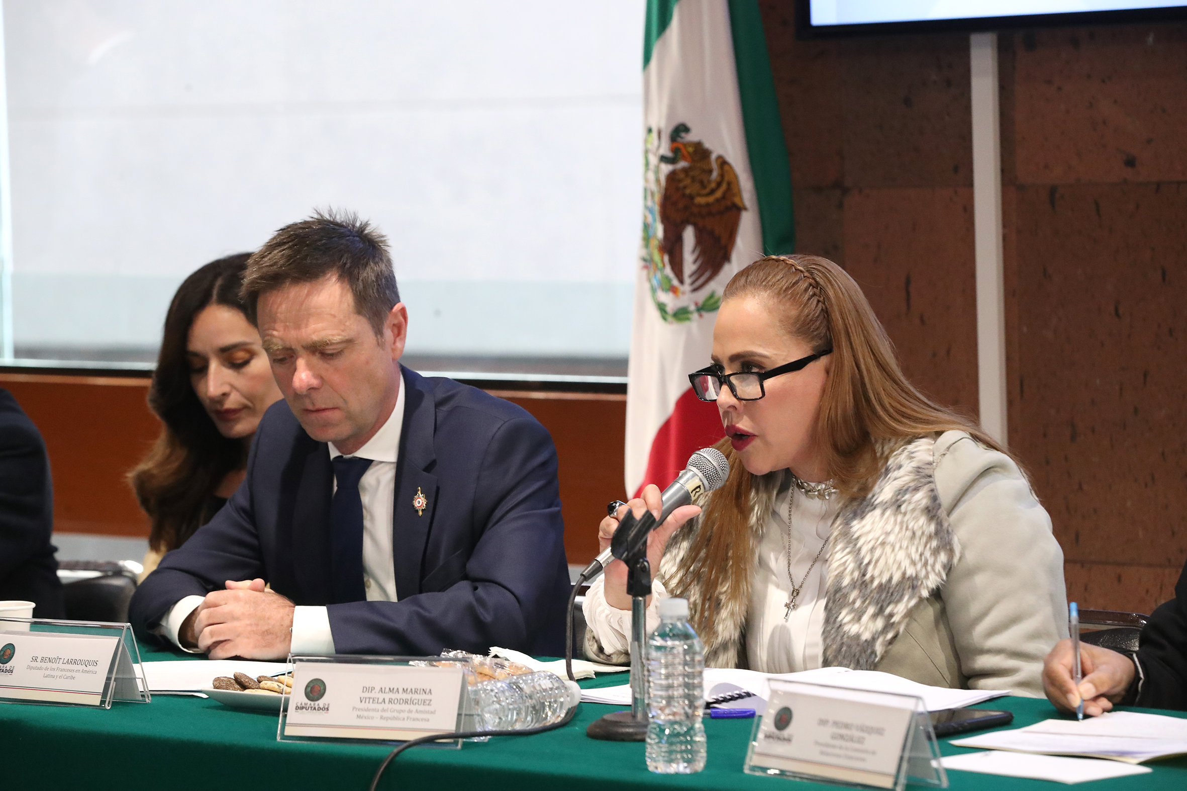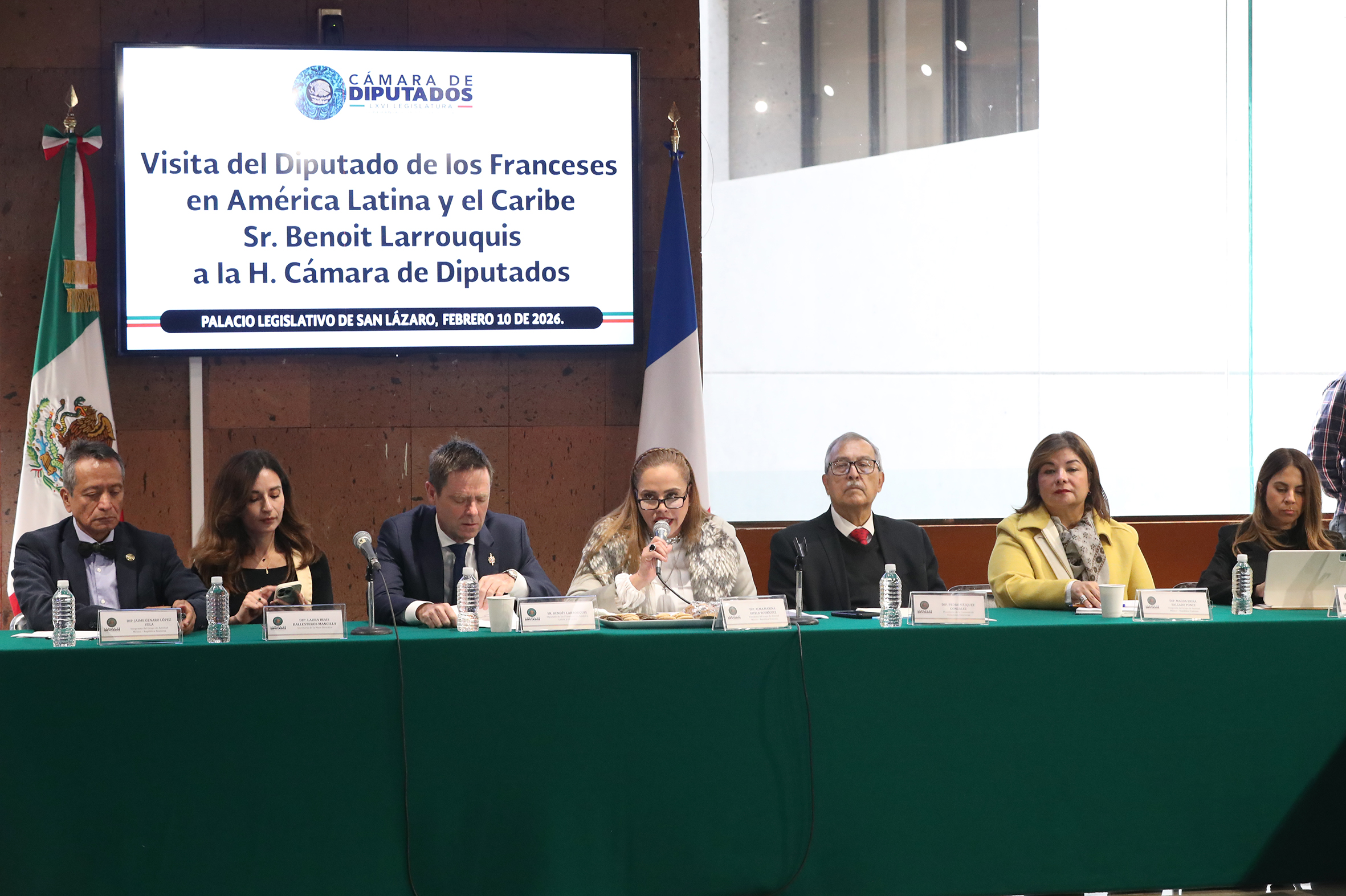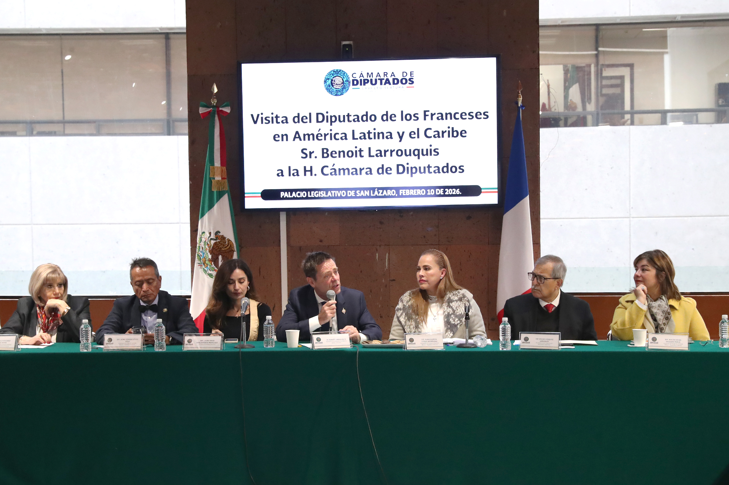 Dip. Ofelia Socorro Jasso, Dip. Jaime Genaro López, Dip. Laura Irais Ballesteros, Sr. Benoît Larrouquis, Dip. Alma Marina Vitela, Dip. Pedro Vázquez y Dip. Magda Erika Salgado