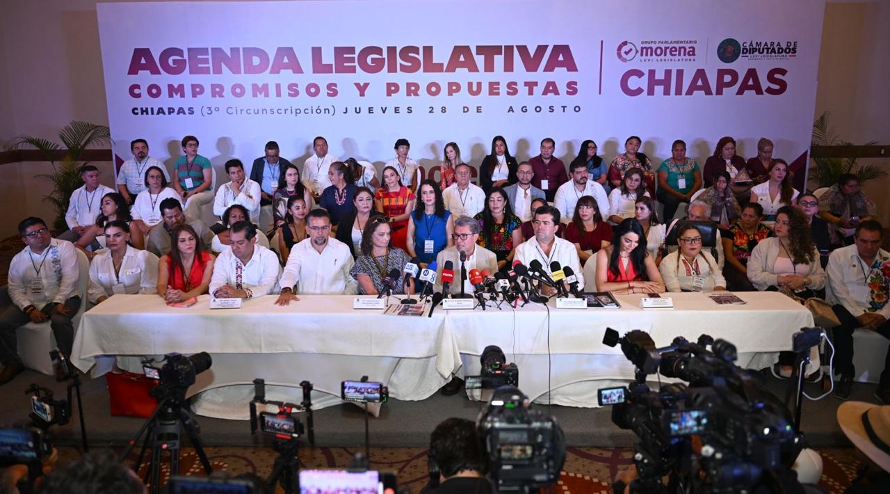 El Grupo Parlamentario de Morena en la Cámara de Diputados, encabezado por su coordinador *Ricardo Monreal Ávila*, concluyó en Chiapas la gira nacional de reuniones plenarias realizada en las cinco circunscripciones del país, cuyo objetivo fue definir la agenda legislativa y la estrategia política rumbo al próximo periodo ordinario de sesiones.