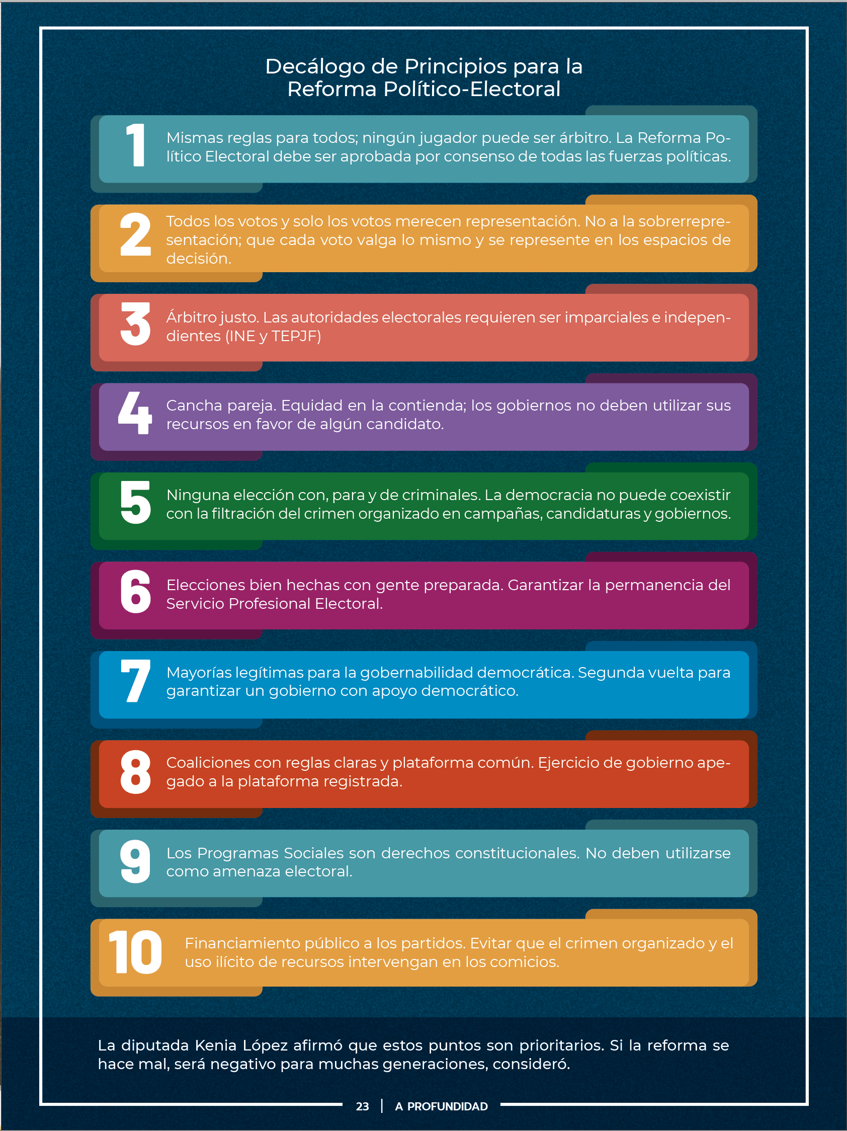 En este 2026 la diputada Kenia López Rabadán presentó un decálogo de propuestas en materia político-electoral que, desde su convicción, requiere estar en una reforma, la cual debiera colocar la voluntad ciudadana en el centro del sistema electoral.
